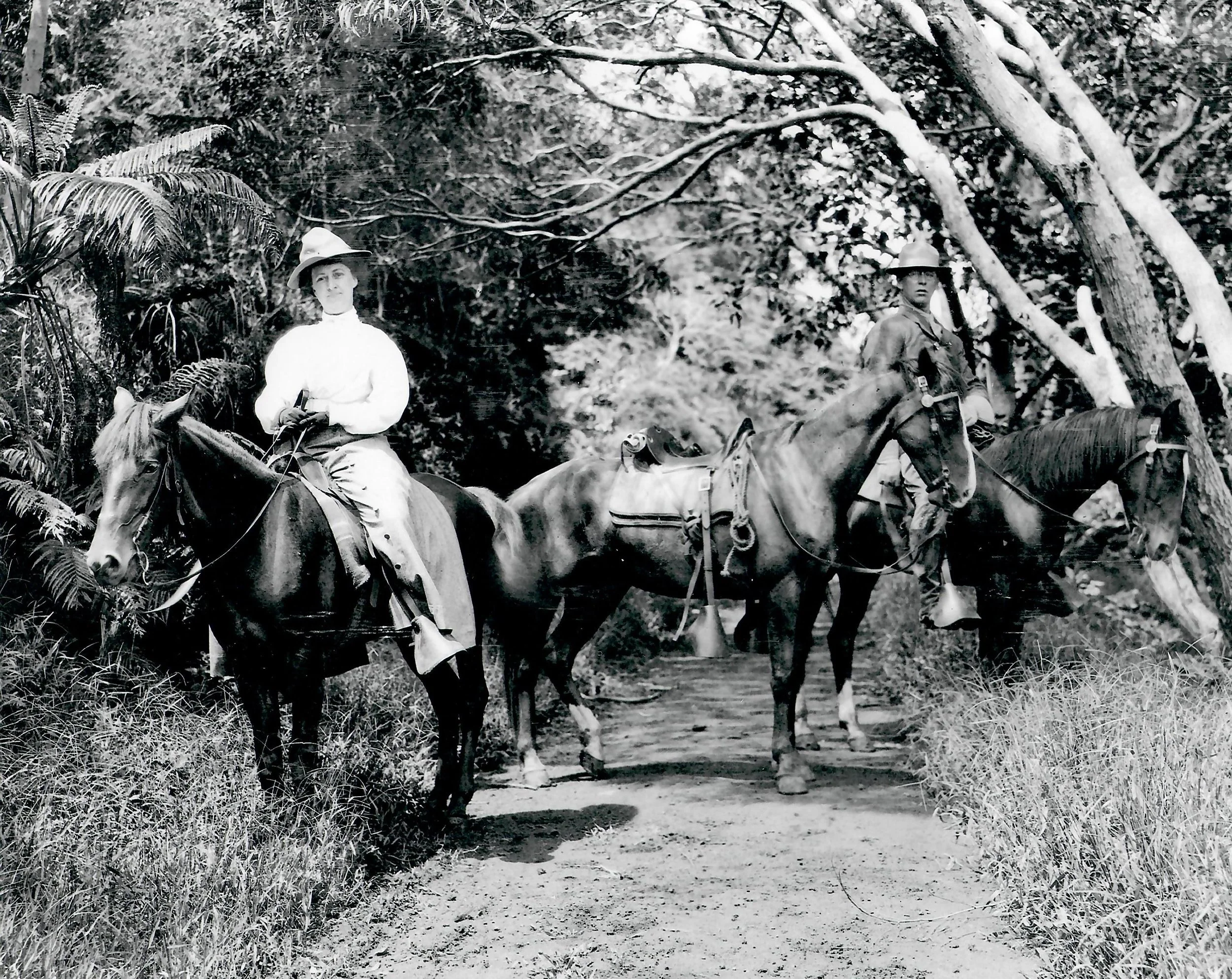 In the late 1800s, the only way to reach the top of Mount Tantalus was by foot or horse. Known as the carriage road, it was a ten-mile trip from Punchbowl to the bottom of Round Top Drive. This meant that everyone who spent time on the mountain maintained a stable with horses, which sometimes included donkeys and mules. Of course, everyone had very strong legs too. The first automobiles were seen in Hawaii at the turn of the century, but it wouldn’t be until 1917 that Tantalus was turned into a gravel road, and then it was paved over in 1937.